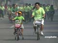 圖:濟(jì)南5歲小童參與“無(wú)車(chē)日”宣傳