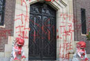 “藏獨(dú)”分子噴涂污毀中國(guó)駐比利時(shí)使館大門