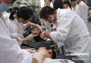 圖:醫務工作者救助來自都江堰地震傷員(5月13日14:18)