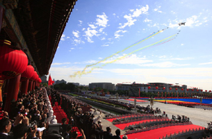 在北京長安街附近的街區,民眾走出家門,親睹受閱部隊的風采……[詳細]
