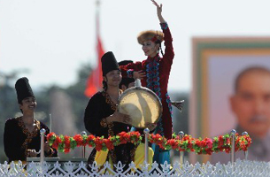 在群眾游行中,首次出現四位不同時期中國最高領導人的原音重現…[詳細]