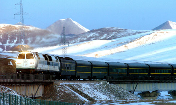 青藏鐵路由青海省西寧市至西藏自治區拉薩市,全長1956公里。其中,西寧至格爾木段長814公里,1979年建成鋪通,1984年投入運營。格爾木至拉薩段,自青海省格爾木市起,沿青藏鐵路南行至西藏自治區首府拉薩市,全長1142公里,其中新建1110公里,格爾木至南山口既有線改造32公里。青藏鐵路建設面臨著多年凍土、高寒缺氧、生態脆弱“三大難題”的嚴峻挑戰,工程艱巨,要求很高,難度很大。