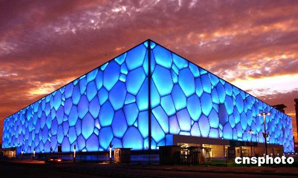 國家游泳中心又被稱為“水立方”(Water Cube),位于北京奧林匹克公園內(nèi),是北京為2008年夏季奧運會修建的主游泳館,也是2008年北京奧運會標(biāo)志性建筑物之一。它的設(shè)計方案,是經(jīng)全球設(shè)計競賽產(chǎn)生的“水的立方”([H2O]3)方案。2003年12月24日開工,在2008年1月28日竣工。其與國家體育場(俗稱鳥巢)分列于北京城市中軸線北端的兩側(cè),共同形成相對完整的北京歷史文化名城形象。做為北京2008年夏季奧運會修建的主游泳館,與國家體育場“鳥巢”同時被稱為2008年北京奧運會標(biāo)志性建筑物。