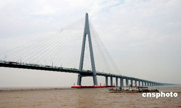 杭州灣跨海大橋(Hangzhou Bay Bridge)是一座橫跨中國杭州灣海域的跨海大橋,2008年5月1日試運(yùn)營通車。它北起浙江嘉興海鹽鄭家埭,南至寧波慈溪水路灣,全長(zhǎng)36公里,是世界上最長(zhǎng)的跨海大橋,比連接巴林與沙特的法赫德國王大橋還長(zhǎng)11公里,成為繼美國的龐恰特雷恩湖橋后世界第二長(zhǎng)的橋梁。杭州灣跨海大橋是國道主干線-同三線跨越杭州灣的便捷通道。大橋北起嘉興市海鹽鄭家埭,跨越寬闊的杭州灣海域后止于寧波市慈溪水路灣,全長(zhǎng)36km。大橋建成后將縮短寧波至上海間的陸路距離 120余公里,從而也大大緩解已經(jīng)擁擠不堪滬杭甬高速公路的壓力,形成以上海為中心的江浙滬兩小時(shí)交通圈。