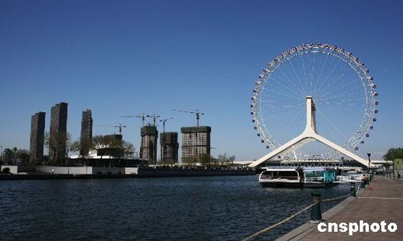 天津之眼即天津永樂橋摩天輪,2007年12月17日正式合龍,使氣勢(shì)恢弘的“天津之眼”完全“睜開”,為津城再添一景。永樂橋摩天輪的直徑為110米,到達(dá)最高點(diǎn)時(shí),距離地面的高度可達(dá)到120米左右,相當(dāng)于35層樓的高度,能看到方圓40公里以內(nèi)的景致,是名副其實(shí)的“天津之眼”。單從高度角度來看,天津之眼超越了大名鼎鼎的倫敦之眼而躍居世界第一。穩(wěn)坐于永樂橋之上的天津之眼作為世界上唯一一座建在橋上的摩天輪,其巧奪天工和奇思妙想確是當(dāng)之無愧的“世界第一”。