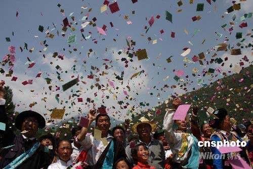 ·圖:藏族群眾拋灑龍達(dá)感謝支援者(7月11日 08:33)