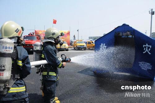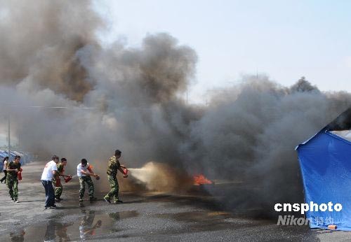·圖:成都舉行帳篷安置點消防救援演習(3)(6月28日 13:06)