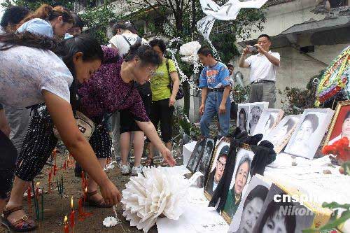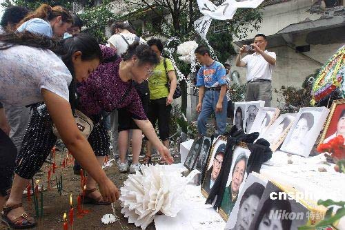 ·圖:志愿者祭奠北川中學遇難學生(6月12日 20:09)