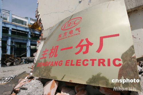 ·圖:東方汽輪機廠清理災后廠房準備重建(6月4日 19:41)