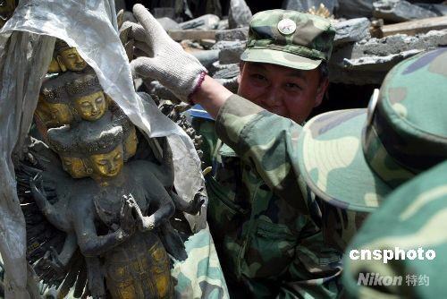 ·圖:解放軍在藏寨廢墟中搶救珍貴文物(6月6日 09:36)