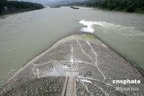 ·圖:四川都江堰魚嘴分水堤震后出現(xiàn)裂縫(6月6日 08:57)