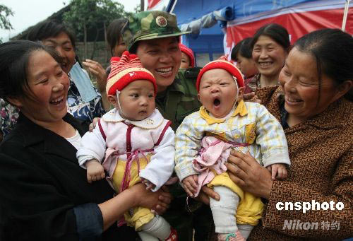 ·地震災區(qū)雙胞胎兄弟成救助站“小明星”(6月4日 20:46)
