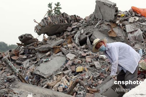 ·圖:幸存者在向娥中學廢墟中尋找遺物(6月5日 18:40)