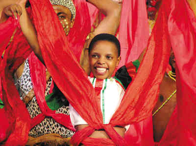 圖:馬里兒童向胡錦濤敬獻(xiàn)葫蘆瓢
