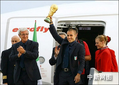 中新網7月12日電 據新京報報道,第四次登頂世界杯的意大利隊昨天凌晨乘坐專機回到了祖國,當飛機在羅馬郊區的海軍機場著陸后,一場席卷意大利全國的慶祝活動拉開了序幕。意大利隊全體成員被授予共和國勛章。