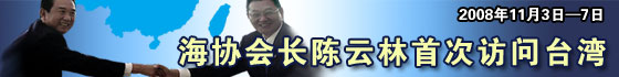 海峽兩岸關系協會會長陳云林11月3日率領海協會協商代表團,乘包機從北京直飛臺灣桃園機場,展開為期五天的寶島之行,并將與海峽交流基金會董事長江丙坤舉行會談。這也是兩會領導人首次在臺灣舉行歷史性會談,因此廣受全球華人矚目。[點擊進入專題]