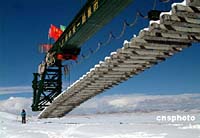 從驚雷翻滾的風火山口,到夏日飛雪的唐古拉山巔,穿過神秘的可可西里無人區,到達圣潔的布達拉宮,一條“鋼鐵天路”綿延1000多公里,在這片曾經人跡罕至的雪域高原上架起又一條惠澤青藏人民的生命線。 青藏鐵路是中國繼三峽工程之后最受世界注目的一項重大工程,也是人類鐵路建設史上最宏偉的工程。它全長1900多公里,是世界上海拔最高、線路最長的高原鐵路。青藏鐵路的全線貫通,意味著西藏終于結束了沒有鐵路的歷史。在被稱為“人類生命的禁區”的地方鋪設青藏鐵路,像是在鋪設一條“天路”,需要強大的科技實力作基礎,需要強大的精神支柱作支撐。青藏鐵路的建設者們靠著這種精神所產生的不竭動力,創造出了人間不曾想像的一項項奇跡。<專題:青藏鐵路7月1日全線通車>