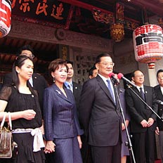 連戰的馬崎同輩兄弟、七十二歲的連宗和激動地說:“今天是馬崎的特別日子、喜慶日子,臺灣連戰家族一支能于三百年后回到馬崎認祖祭拜,我們所有的宗親都非常的高興。我們盼望已久。希望連戰先生今后能常回來看看,增進兩岸連氏情誼。”....<全文>