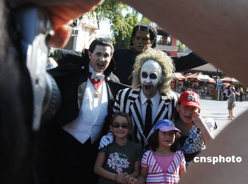 美國洛杉磯環球影城極力營造萬升鬼節氣氛。