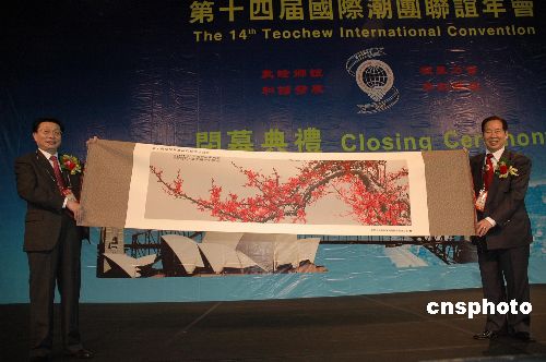 圖:馬儒沛向第十四屆國際潮團聯誼年會贈送紀念品