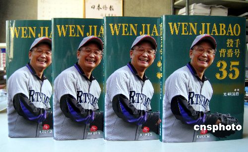 作為紀(jì)念中日邦交正常化35周年的特別企劃,《35號(hào)投手溫家寶》一書(shū)由日本僑報(bào)社推出,12月18日起在日本正式發(fā)行。中國(guó)外交部副部長(zhǎng)(前駐日大使)王毅在推薦辭中說(shuō),該書(shū)生動(dòng)地再現(xiàn)了溫家寶總理“融冰之旅”的感人一幕。據(jù)介紹,該書(shū)披露了溫家寶總理訪(fǎng)日期間大量鮮為人知的故事,描述了溫總理專(zhuān)用球衣“35號(hào)”的選定及如何秀制球衣背面“WEN JIABAO”幾個(gè)拼音字母的過(guò)程,記錄了溫總理與立命館大學(xué)大學(xué)生一起打棒球的場(chǎng)面,以及訪(fǎng)日期間與日本百姓的各種交流活動(dòng)。中新社發(fā) 段躍中 攝