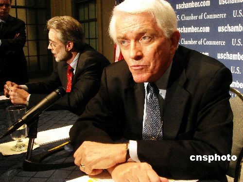盡管次貸風暴和油價上漲對美國經濟形成傷害,但美國商會會長兼首席執(zhí)行官托馬斯·多諾霍八日上午在華盛頓舉行的美國商會年度記者會上預言,今年美國經濟將緩慢增長。他認為,美國經濟“也許在今年下半年會恢復以往的增長勢頭”。圖為托馬斯·多諾霍在接受記者提問。中新社發(fā) 邱江波 攝