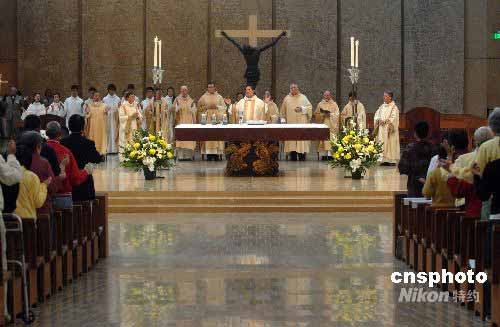 洛杉磯“天使之后”大教堂五月二十四日(周六)舉行大彌撒,為中國四川大地震遇難者祈禱。當?shù)丶s五百名天主教信眾參加了彌撒。“天使之后”大教堂是天主教洛杉磯總教區(qū)的主教堂,洛杉磯總教區(qū)是美國最大的天主教區(qū)。中新社發(fā) 張煒 攝