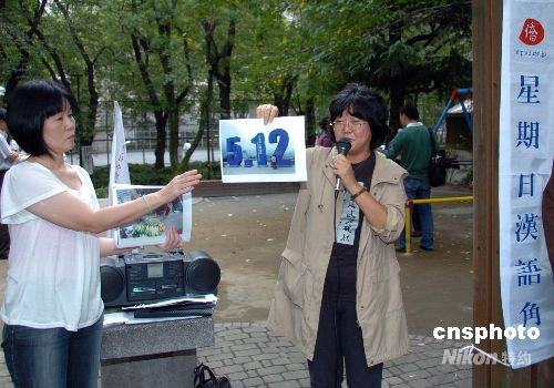 10月5日,日本自由撰稿人蘆澤禮子女士在東京漢語角介紹她剛從中國四川震區(qū)采訪的所見所聞。蘆澤禮子介紹說,在四川震區(qū)活躍著大批中國和日本的志愿者。他們?yōu)闉膮^(qū)人民盡快重建家園、恢復生產生活,做出了可歌可泣的貢獻。她說,通過這次大地震,志愿者精神在中國得到進一步普及,這對于中國今后的發(fā)展有著十分重要的意義。中新社發(fā) 段躍中 攝