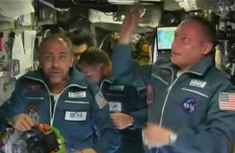 經過兩天飛行,搭載美俄兩名宇航員和世界第六位太空游客的俄羅斯“聯盟TMA-13”載人飛船14日與國際空間站成功對接。 美國國家航空和航天局發布的這張照片顯示,10月14日,世界第六位太空游客、美國電腦游戲開發商理查德·加里奧特(左)和美國宇航員邁克·芬克到達國際太空站。
