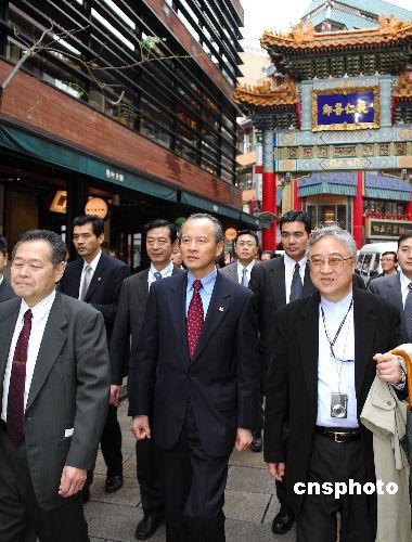 2009年1月23日上午,中國(guó)駐日本國(guó)特命全權(quán)大使崔天凱冒雨前往橫濱中華街,向當(dāng)?shù)厝A人華僑拜年。崔天凱與橫濱華僑總會(huì)會(huì)長(zhǎng)任政光親切會(huì)談,慰問熱心資助教育的愛國(guó)華僑吳桂顯先生的遺孀,在臺(tái)灣同胞茶店品茶論道等,親身體驗(yàn)當(dāng)?shù)厝A人生活。崔天凱還視察了橫濱中華街關(guān)帝廟、媽祖廟等建筑,并出席華僑主辦的歡迎午宴。中新社發(fā) 侯宇 攝
