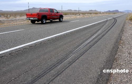 當地時間二月五日下午,中國旅游團車禍遇難者家屬來到事故現場——美國亞利桑那州九十三號公路二十八英里處舉行悼念活動,寄托對親人的哀思。中新社發 張煒 攝