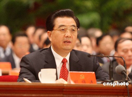 十月二十一日,中國共產黨第十七次全國代表大會在北京人民大會堂閉幕,中共中央總書記胡錦濤發表講話。中新社發 毛建軍 攝