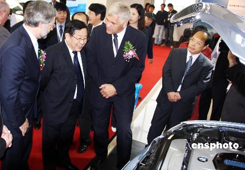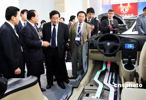 10月25日,第五屆北京國(guó)際節(jié)能環(huán)保汽車展覽會(huì)在北京開幕,中國(guó)科技部部長(zhǎng)萬(wàn)鋼參觀展會(huì)上的展車。中新社發(fā) 鄭雄增 攝