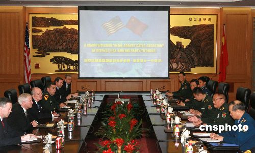 圖:曹剛川與美國(guó)國(guó)防部長(zhǎng)羅伯特·蓋茨舉行會(huì)談
