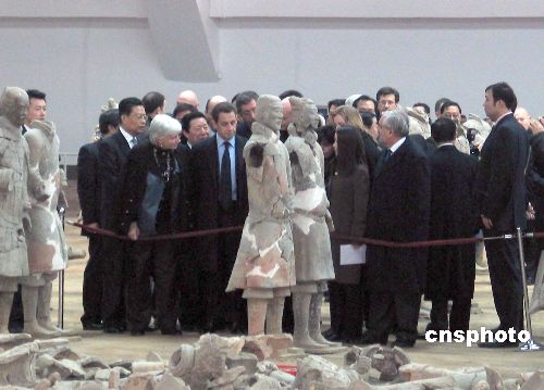 圖:法國總統薩科齊參觀秦兵馬俑博物館