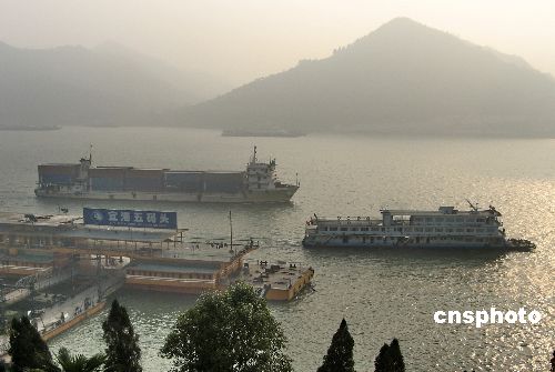 12月9日,長江中上游交界處湖北宜昌客運港水域,水位為0.06米,高于1至3日約40厘米,游輪和集裝箱輪在薄霧中便捷地駛往長江三峽。據了解,長江航務管理局與中國三峽總公司協商,三峽工程從4日起發揮生態調度功能,加大三峽水庫下泄流量為下游補水,緩解當前長江中游通航緊張局勢。中新社發 韓玉洪 攝