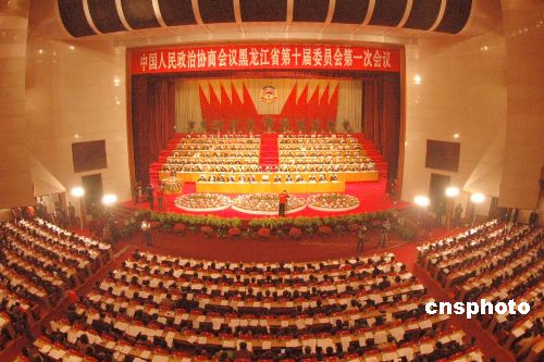 1月22日上午9時,中國人民政治協商會議黑龍江省第十屆委員會第一次全體會議在哈爾濱國際會議中心環球劇場開幕。中新社發 王忠言 攝