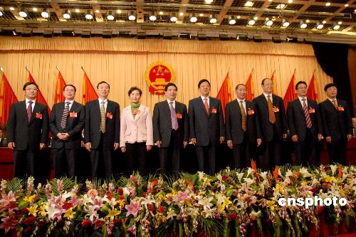 一月二十四日,云南省十一屆人大一次會議選舉產生新一屆云南省人民政府省長、副省長。圖為云南省委書記白恩培(右五)和當選云南省新一屆政府省長、副省長合影。從右至左為顧朝曦、高峰、孔垂柱、羅正富、白恩培、秦光榮、李江、劉平、曹建方、和段琪。中新社發 石雨 攝