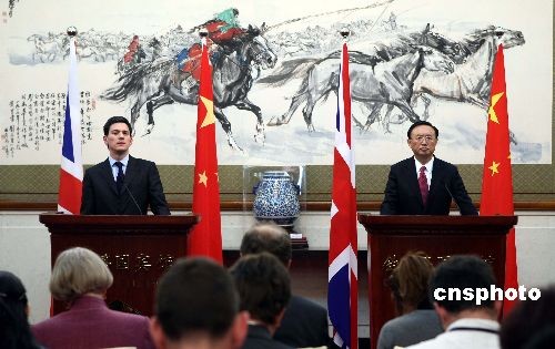 圖:楊潔篪與英國外交大臣米利班德舉行會談