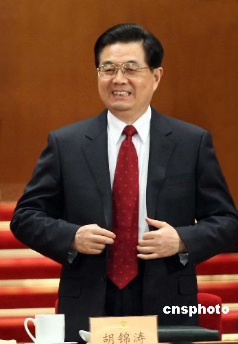 3月3日,全國(guó)政協(xié)十一屆一次會(huì)議在北京人民大會(huì)堂開幕,胡錦濤出席會(huì)議。中新社發(fā) 盛佳鵬 攝