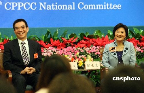圖:夫妻人大代表林毅夫、陳云英面對媒體