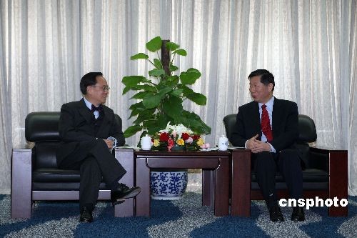 3月18日,香港特別行政區(qū)行政長官曾蔭權在北京先后拜訪了中國人民銀行和中國證券監(jiān)督管理委員會。圖為曾蔭權與中國證監(jiān)會主席尚福林交談。中新社發(fā) 盛佳鵬 攝