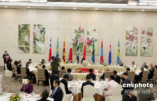 4月11日晚,中國國家主席胡錦濤在海南三亞下榻的飯店舉行宴會,歡迎前來出席博鰲亞洲論壇2008年年會開幕式的外國元首和政府首腦。中新社發 任晨鳴 攝