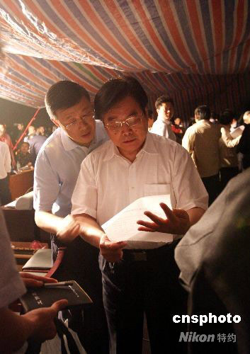5月12日14時28分,在四川汶川縣(北緯31度,東經103.4度)發生7.8級地震。圖為四川省省長蔣巨峰在災區指揮抗震救災。 中新社發 黃榮 攝