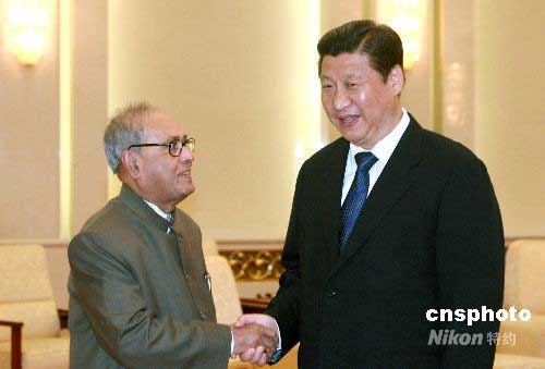 6月6日,中國國家副主席習近平在北京人民大會堂會見印度外交部部長慕克吉。中新社發 廖文靜 攝