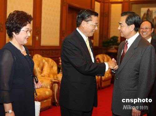 6月12日晚,新任中臺辦、國臺辦主任王毅在北京釣魚臺會見并宴請臺灣海峽交流基金會董事長江丙坤一行。中新社發 任晨鳴 攝