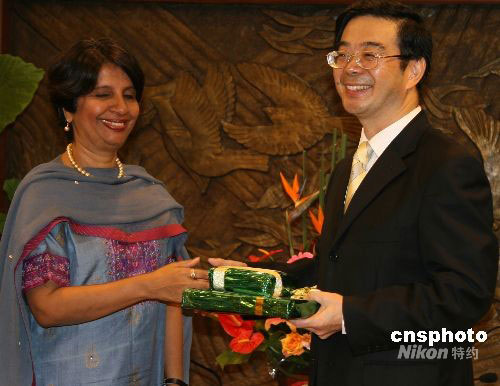 9月5日,印度駐華大使尼如帕瑪·拉奧琪(左)在長沙接受湖南省長周強(qiáng)會(huì)見時(shí)稱,希望通過加強(qiáng)兩地在經(jīng)貿(mào)、文化、環(huán)保以及青年交流等方面的合作,為中印兩國關(guān)系的友好持久發(fā)展注入強(qiáng)勁動(dòng)力。中新社發(fā) 傅煜 攝