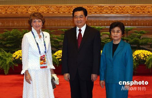 圖:胡錦濤夫婦歡迎出席北京殘奧會的荷蘭公主瑪格麗特