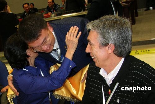 中委雙方在西昌衛星發射中心指控大廳共同慶祝衛星發射成功。 北京時間10月30日凌晨零時53分,中國在西昌衛星發射中心用“長征三號乙”運載火箭,將“委內瑞拉一號”通信衛星成功送入預定軌道。這是中國首次向拉丁美洲用戶提供整星出口和在軌交付服務。中新社發 孫自法 攝
