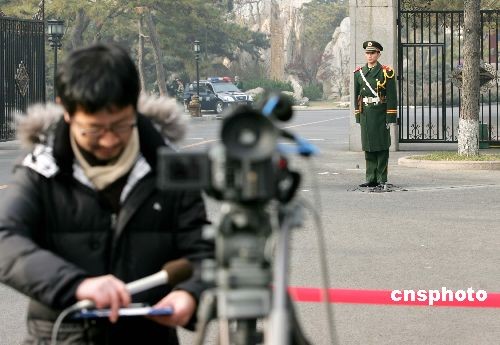 12月8日,新一輪朝核問題六方會談代表團團長會將于當日下午在北京舉行。此次會談是在今年7月以后時隔5個月舉行,韓、朝、美、中、俄、日六國代表團長將商討核驗證議定書的問題和棄核第二階段時間表等。圖為在釣魚臺國賓館門外等候會議開始的記者。中新社發 富田 攝